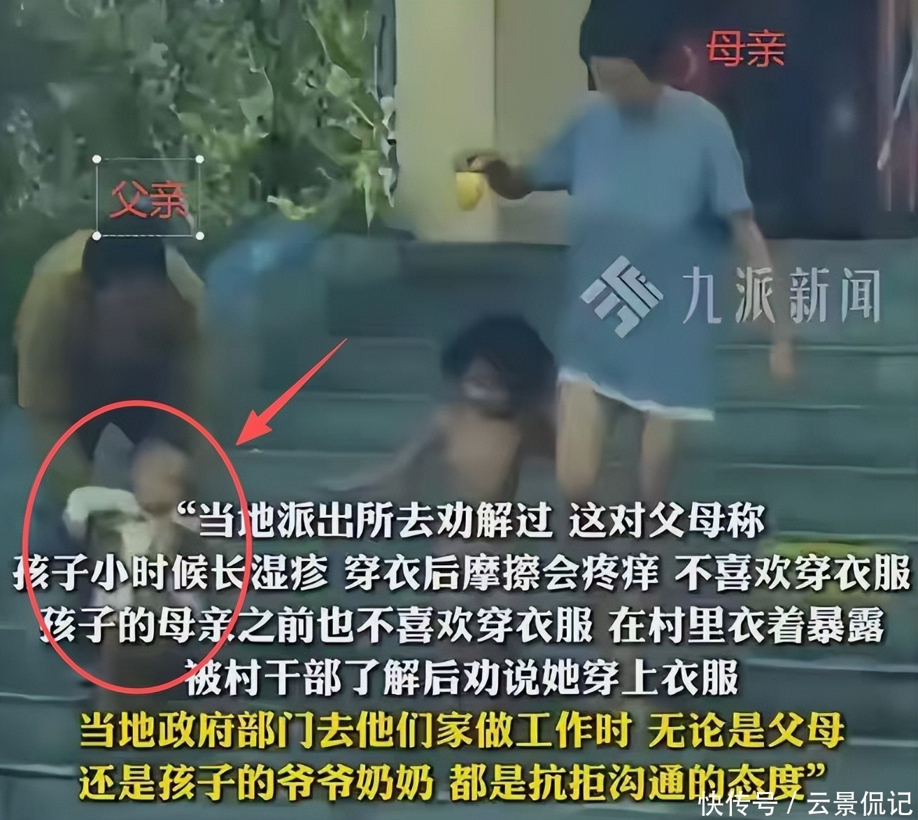 她声称,孩子之所以不穿衣物,是因为患有皮肤疾病,一旦接触布料便会剧烈哭闹,久而久之便顺其自然了。